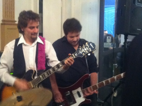 Du bon, du miam-miam le week-end dernier à Agen, Nico, Fabrice (oui le célèbre Fabulous Fab') et l'équipe du Café gourmand nous ont accueilli dans leur nouveau repaire pour une soirée où Rock'n'Roll et bonne humeur étaient de sortie. Quelle joie de revoir les potes du coin, Anne-Marie, Jean-Paul, Gilles, Pascal, Moms, Olivier, Julien, ... Et quel plaisir aussi de partager la soirée avec le local Fabulous Fab' et ses fucking blue boys, les bordelais Sexy Lobsters et les gersois de The Space Devil Rockets. Ci-dessous, les 2 jeunes recrues Floguit et Antoine à l'oeuvre lors de la soirée.